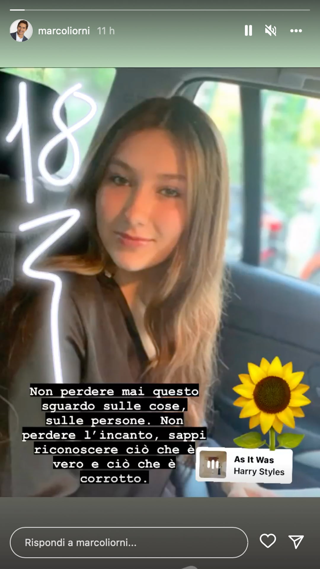 La dedica, all’interno della storia Instagram recita: “Non perdere mai questo sguardo sulle cose, sulle persone. Non perdere l’incanto, sappi riconoscere ciò che è vero e ciò che è corrotto“. Un 18 disegnato a mano, accanto al volto di Emma lascia intendere che abbia raggiunto il grande traguardo.