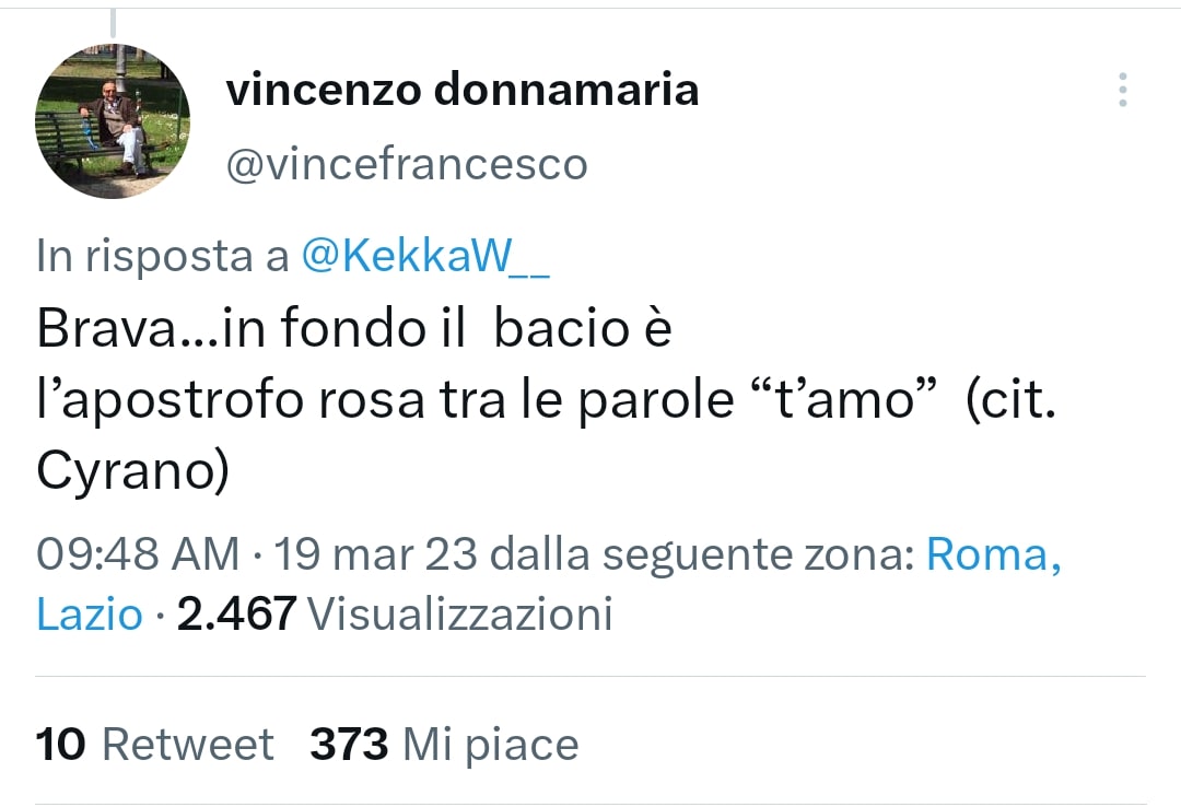 Su Twitter esistono decine di pagine fan di Edoardo e della coppia che ha formato con Antonella. Una di loro ha ripubblicato lo screen aggiungendo l’apostrofo, perché la sua amministratrice non sopportava di vedere una dedica così bella rovinata da un errore grammaticale. Sotto al post, è intervenuto Vincenzo Donnamaria, padre di Edoardo, che lo ha bacchettato in maniera goliardica: